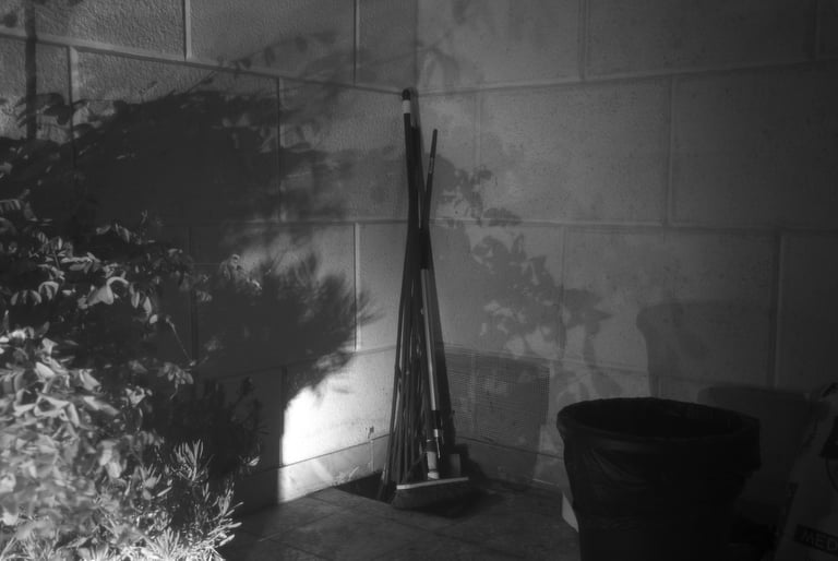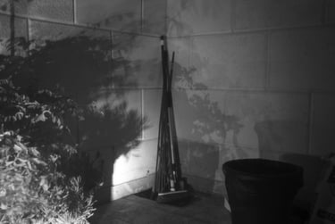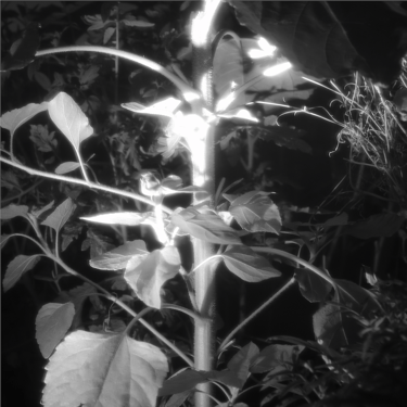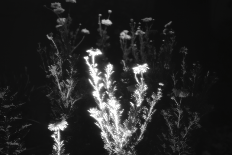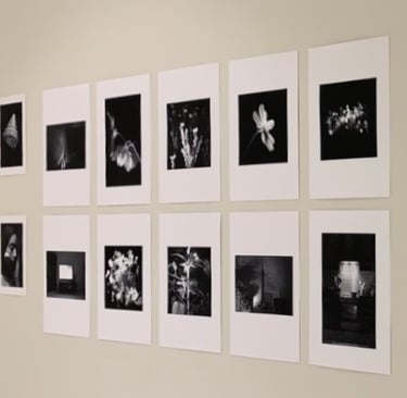 These photographs explore the striking contrast between the harshness of artificial light and the delicate forms of natural elements.
